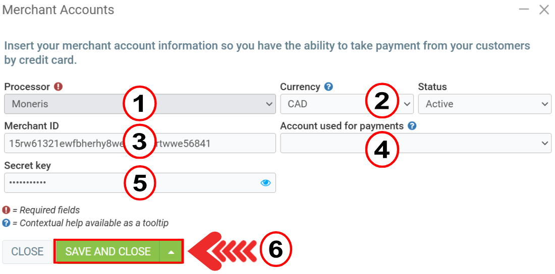 - Account number: Your unique account number with your payment provider (not mandatory for some processors).
