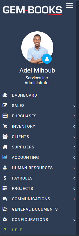 This way of managing and defining user-specific access explains why Adel Mihoub, who is the company's administrator, will see this exhaustive menu appear.