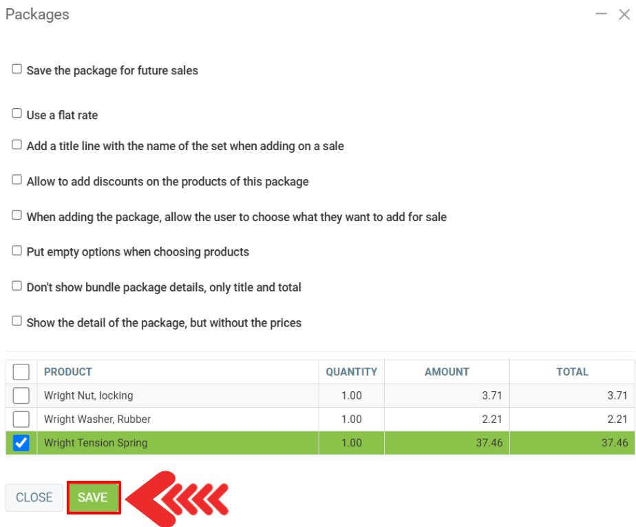 Select Packages > Create a package for this sale only.