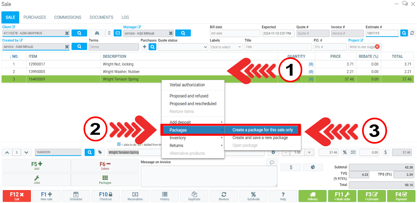 Creating a Package from the Point of Sale (Estimate) in GEM-BOOKS