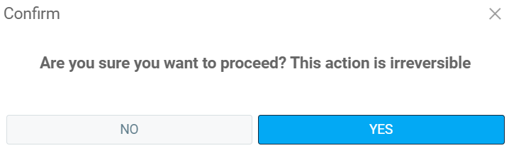 A confirmation window appears with the following message: ''Are you sure you want to proceed? This action is irreversible''.