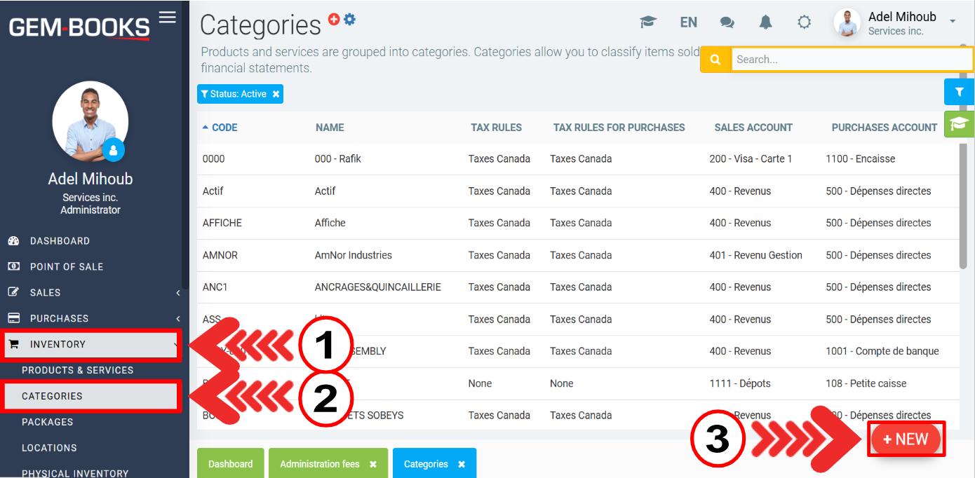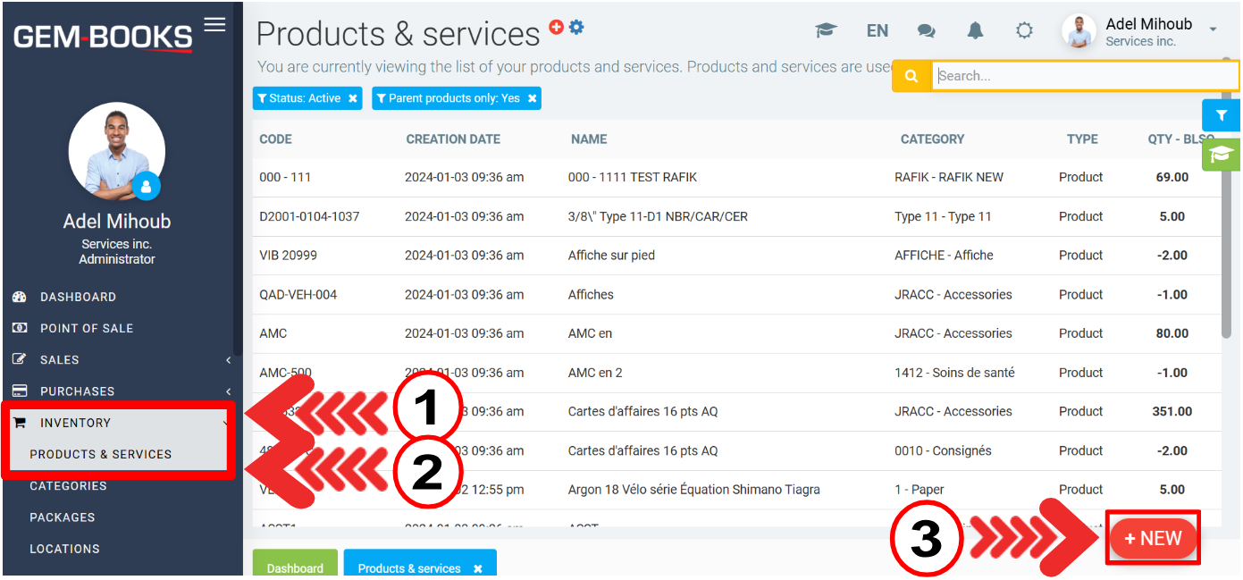 - Click on Inventory > Products & Services.