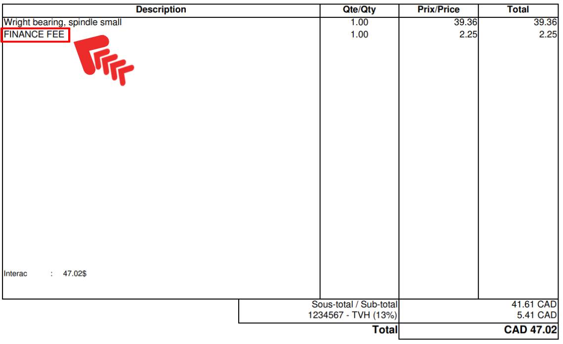 The estimate and the invoice will show the finance fee.