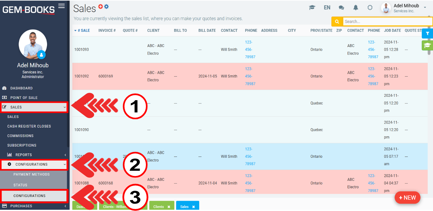 To do this, click on Sales > Configurations > Configurations.