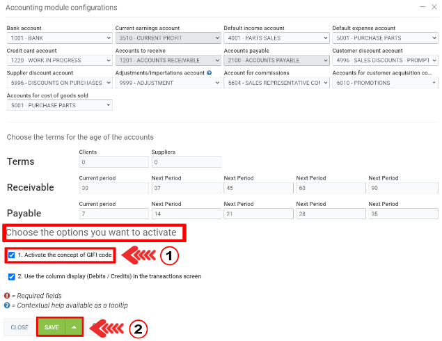 Check the “Activate the concept of GIFI code” box.