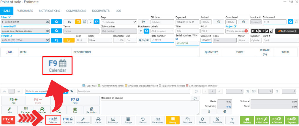 To confirm the appointment with SMS, click on the text and GEM-CAR will send a SMS if configured.