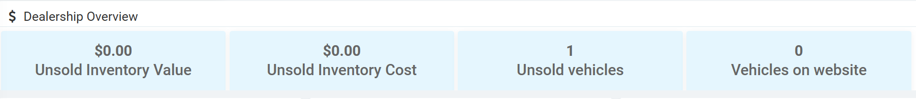 This is a real-time overview of your dealership, showing 4 statistics: