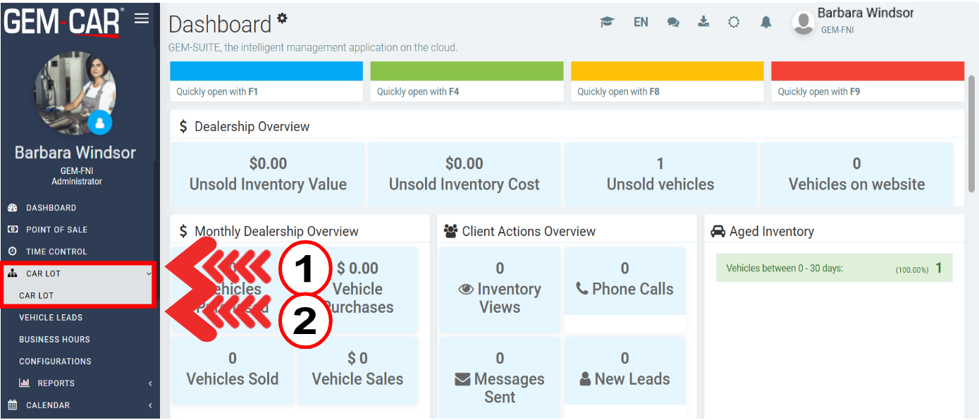 To add a vehicle for sale, click on Car lot > Car lot.