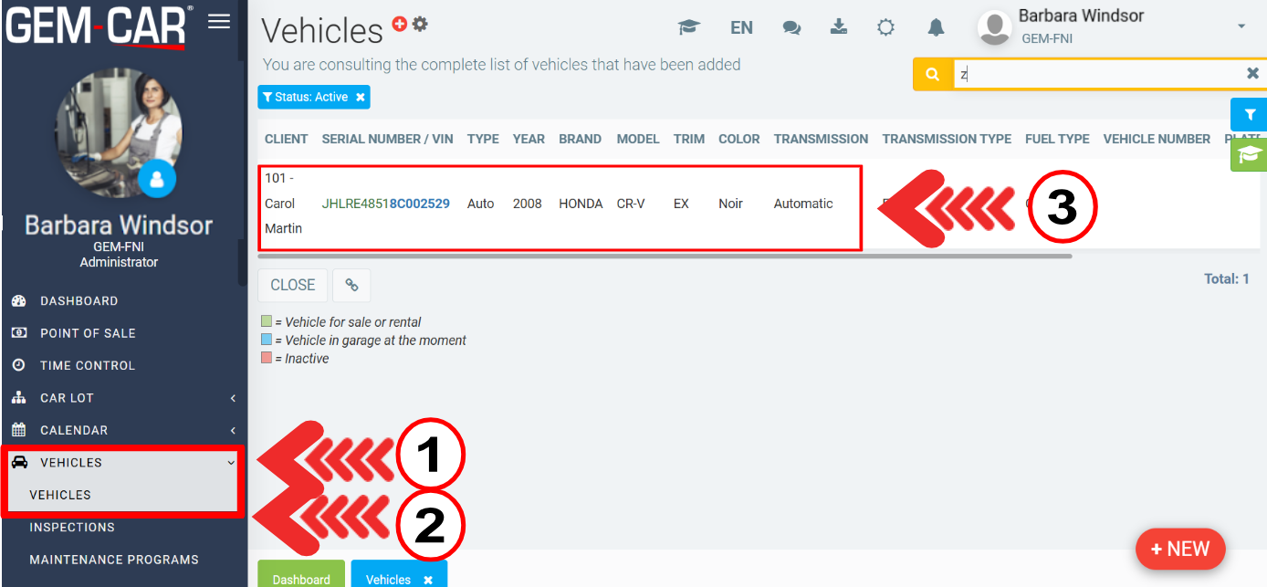 Then, once you've located your vehicle in the list, simply click anywhere on the row and a window will open, allowing you to change the information related to the vehicle.