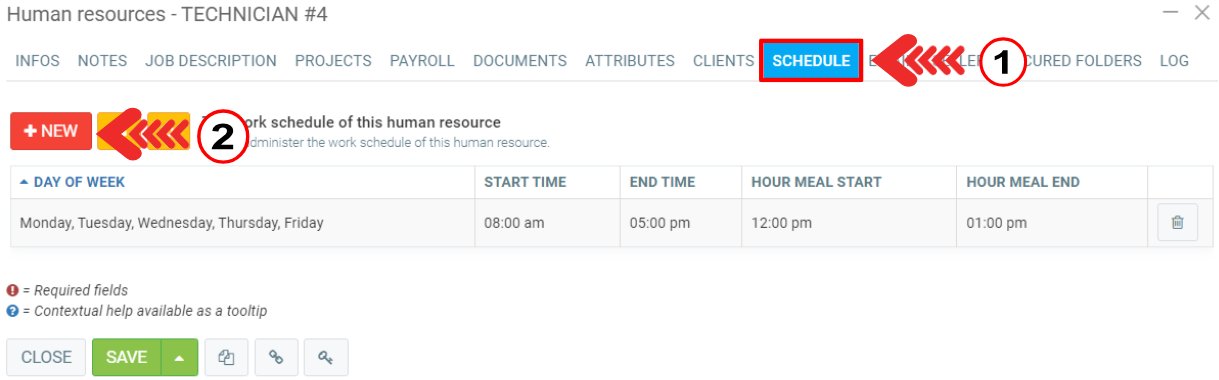 2. Select a Human Resource and go to the Schedule tab > +New.