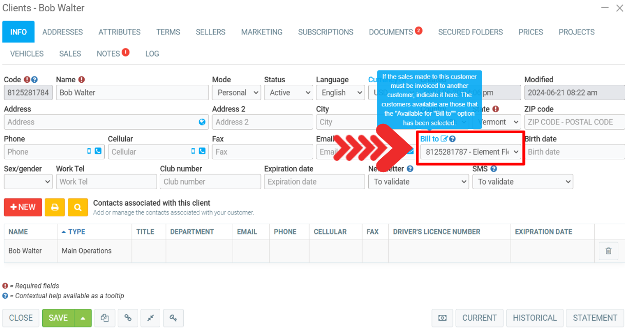 If you select the Disable “Bill to” in Clients option simplifies documents, making them clearer and presenting only essential information. This option is present in the client's file.