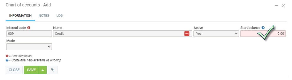 For the first step, you can enter the starting balances of each accounting account in the account card. The accounts are accessible from the menu Accounting > Chart of accounts.