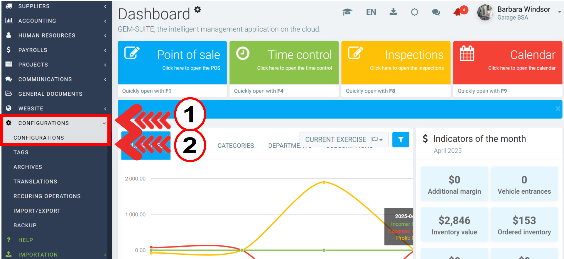 To check the taxes, click on Configurations > Configurations.