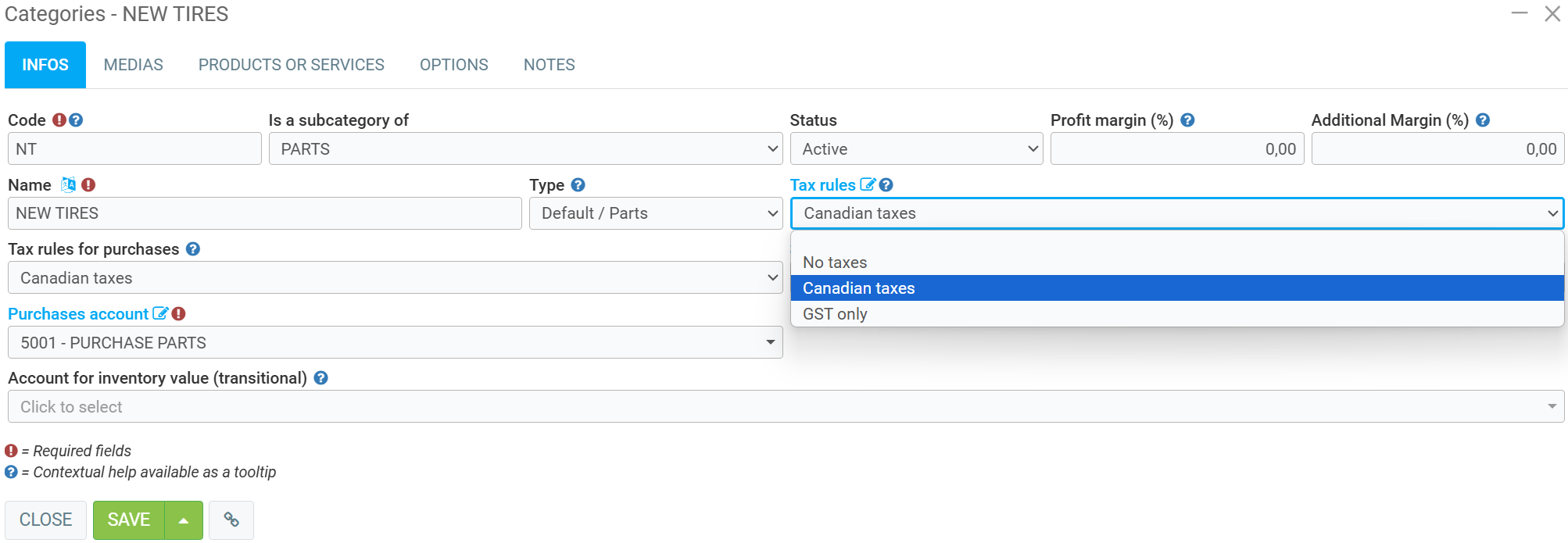 Note: If you want to sell products without taxes, you don't need to add a tax rule. Simply specify the tax rule No taxes to be used in a category or manually during a sale in the fields related to taxes.