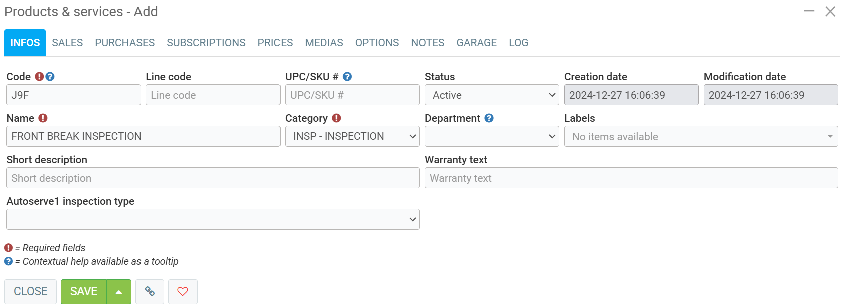 5) The Name could be "INSPECTION", "JOB" or anything else you would like.