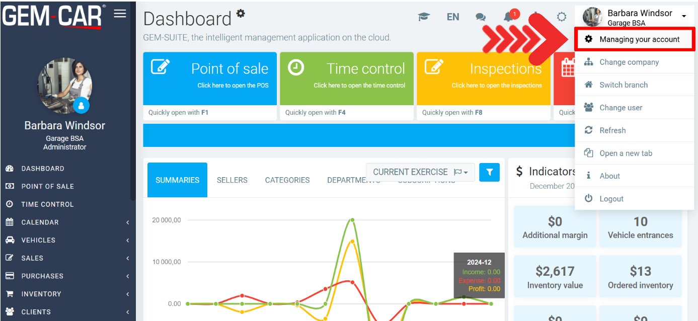 From the top right menu, click on your username > Managing Your Account.