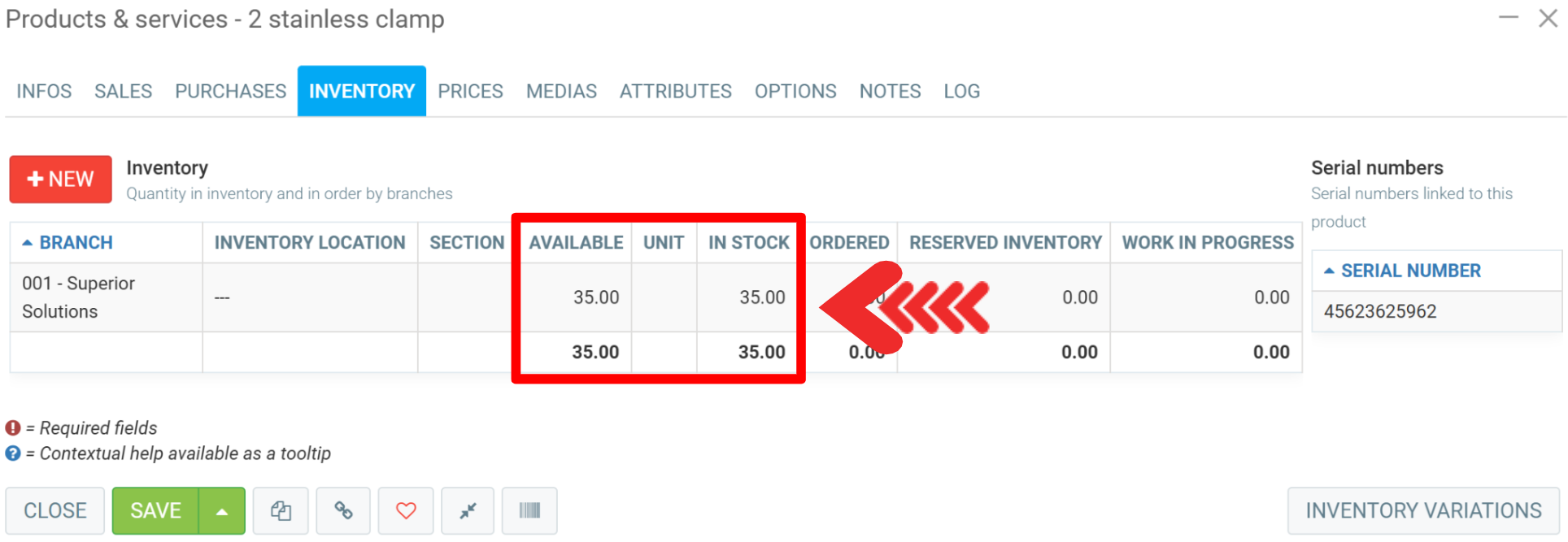 From the main menu on the left side of the application, click Inventory > Products & Services > select the Product or Service for which you want to modify the inventory.