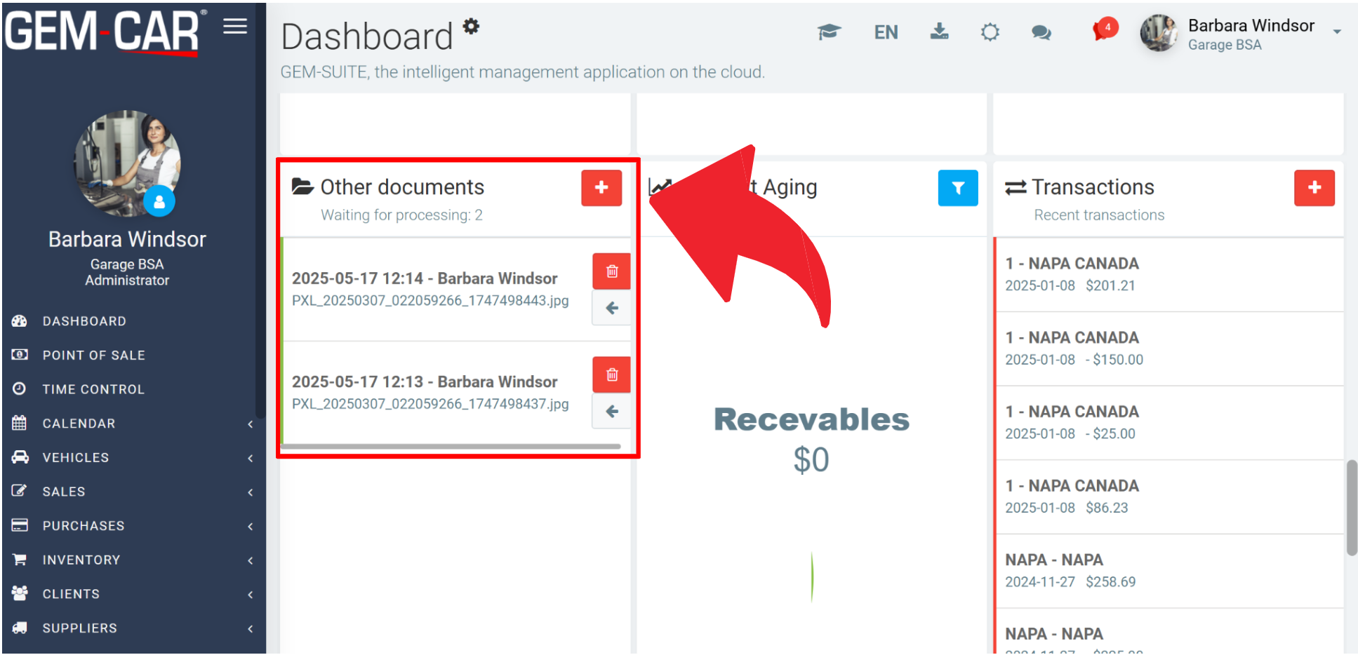 In your GEM-CAR, on a computer, you can see that the documents added by cell phone are listed in the Other documents field on your Dashboard.