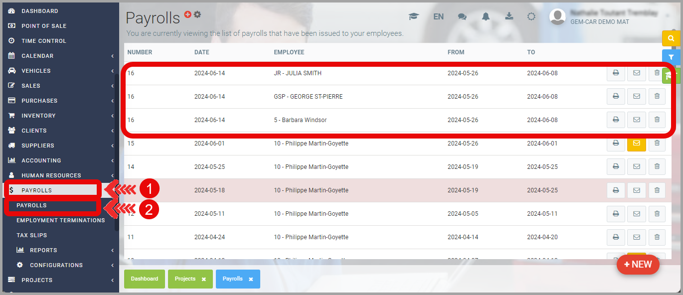 - To access copies of the generated checks, navigate to Payroll > Payroll. You will find them listed there.