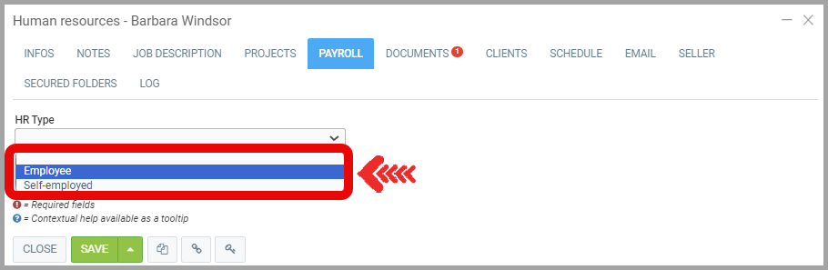 For a human resource working for you as an Employee, payment for their services will appear on your payroll list, and their complete file must be filled out with all the necessary data by your payroll department staff.