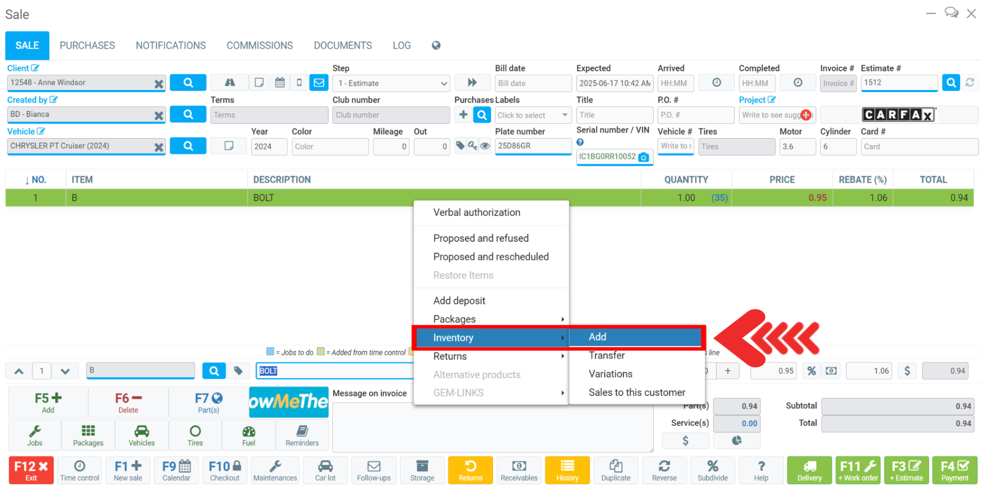 On the Inventory tab, click on the red button +New. You can add products to inventory in the same way as with option 1.