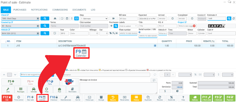 To verify that the mechanic has revived the job, you can look inside the Calendar by pressing F9 or the agenda icon at the bottom left of your screen.