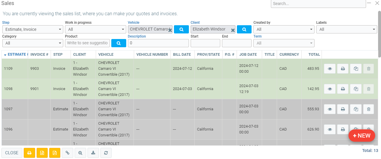 Select the vehicle, a confirmation box will open with the message ''This customer already has unfinished sales. Do you want to display them instead of creating a new one?''. Select Yes.