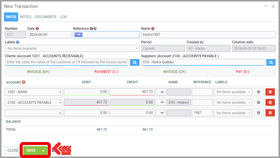 Click Save to complete your transaction.