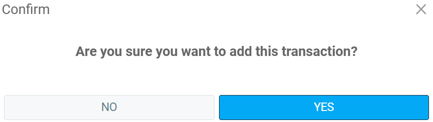 A confirmation window appears, with the following message: “Are you sure you want to add this transaction? Click on Yes.