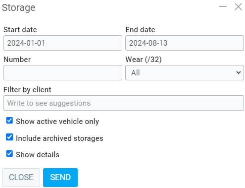 In the menu on the left, click on Vehicles > Reports > Storage.