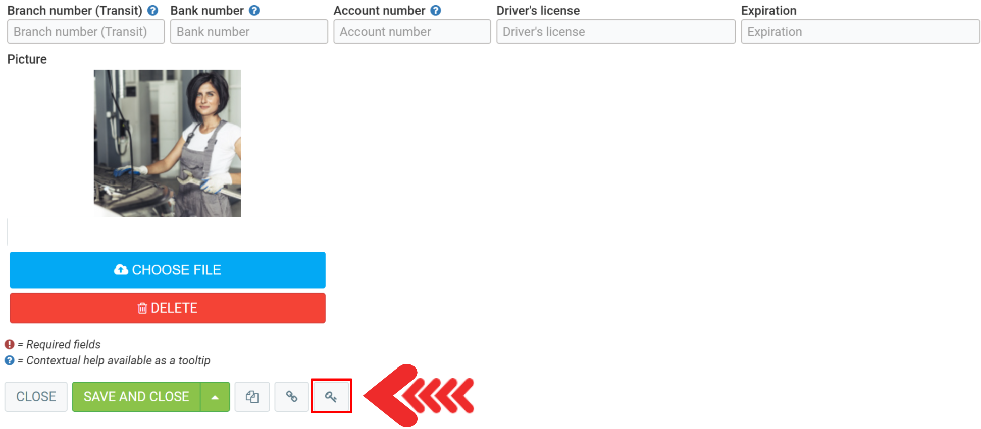 Click on the key icon at the bottom of the resource's profile under the Infos tab.