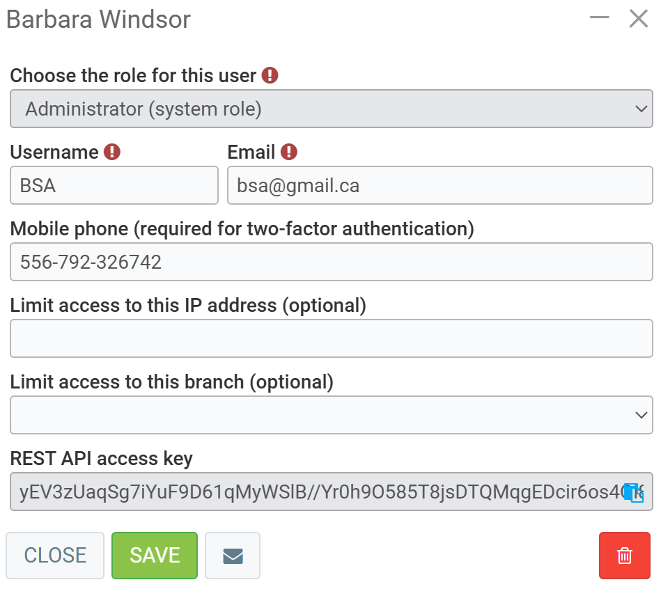 To disable a user's access, simply click on the trash icon located at the bottom right.