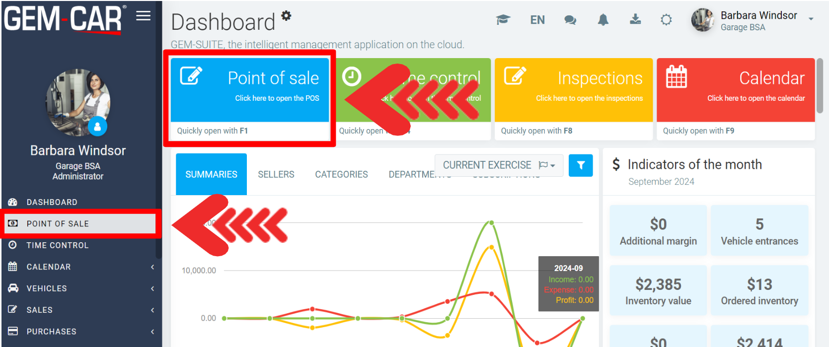- by pressing the blue Point of Sale button on the Dashboard