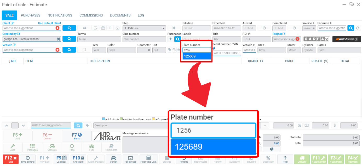 The remaining vehicle information appears in the Point of Sale, and you can continue creating the sale as usual.