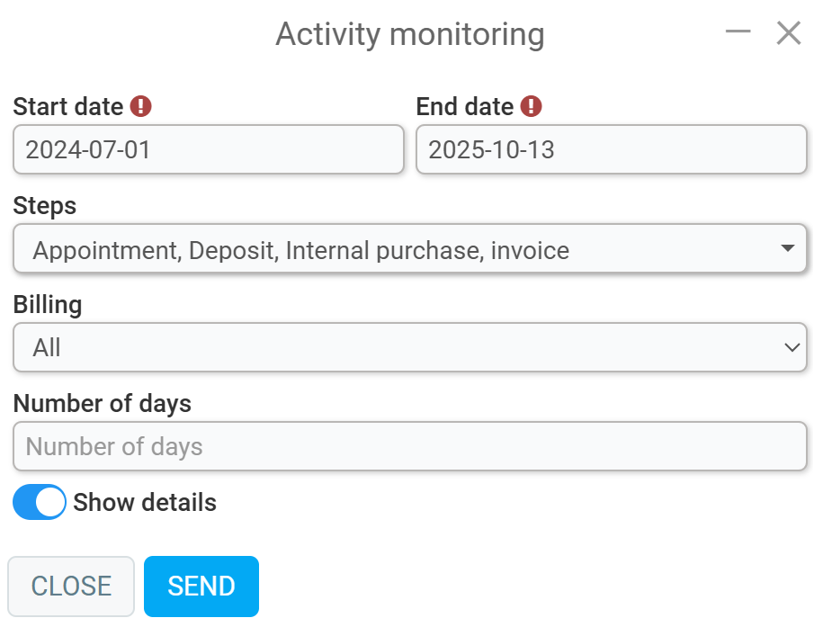 However, if you would like to obtain a summary of the values of services performed on certain dates for all vehicles, click on Vehicles > Reports > Activity Monitoring.