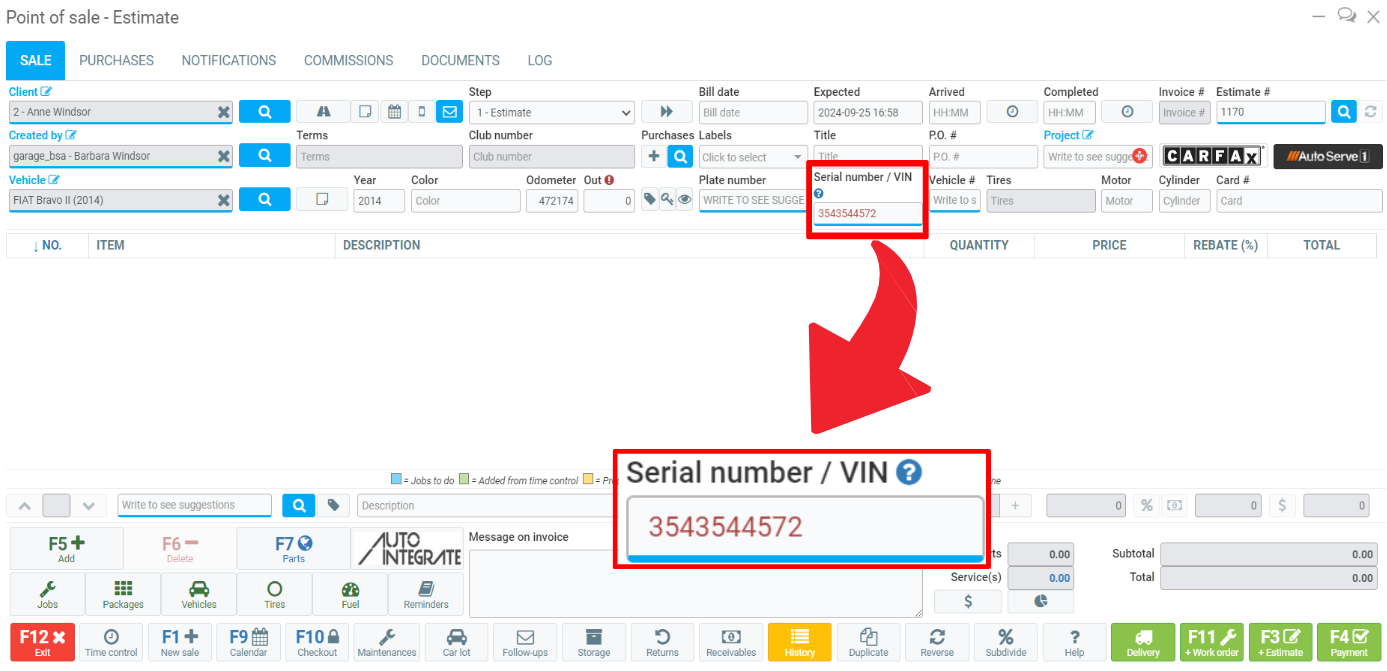 When you open the Point of Sale, after selecting the client and the vehicle, you may notice that the Serial Number/VIN has different colors: green or red.