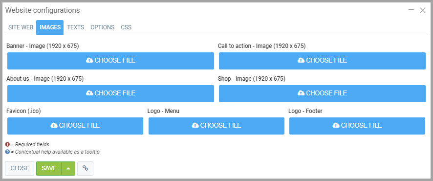 To configure images specifically for the Website, from the main menu on the left of the application, click on Website > Configurations > Configurations > click on the Image tab.