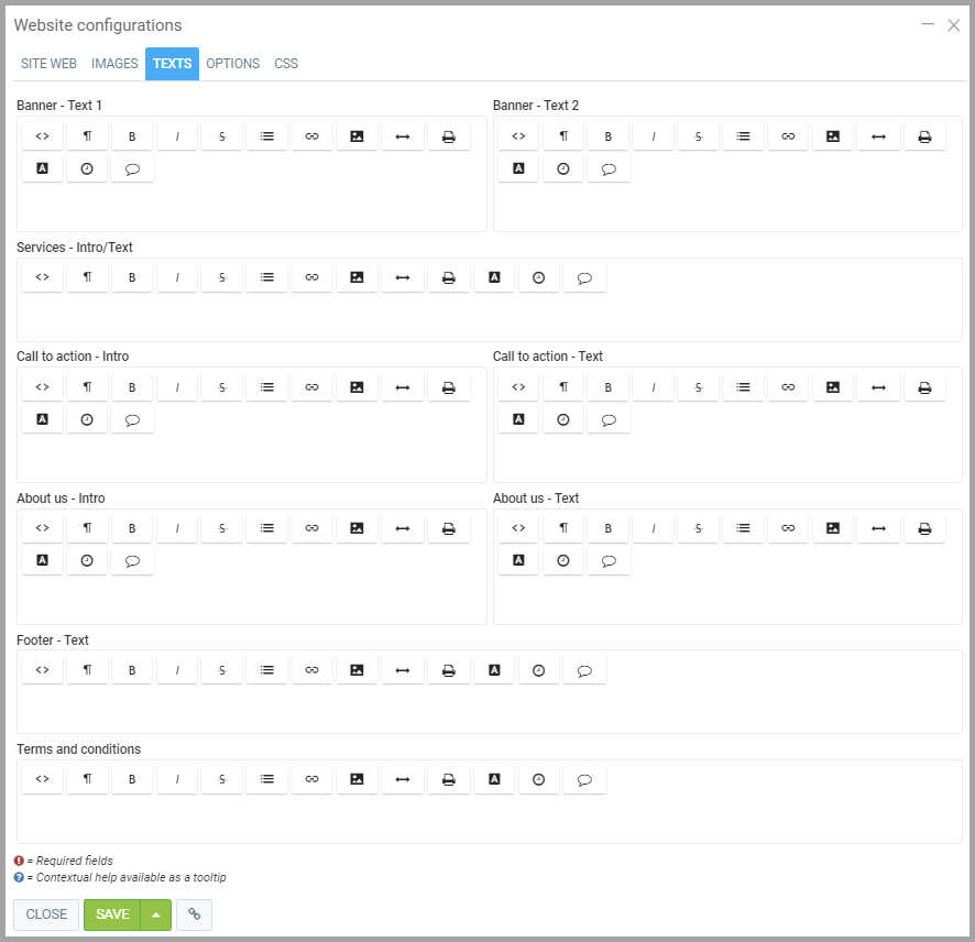 Warning! To configure your Website, you must first have activated the module. See Activating the Website Module for more details.
