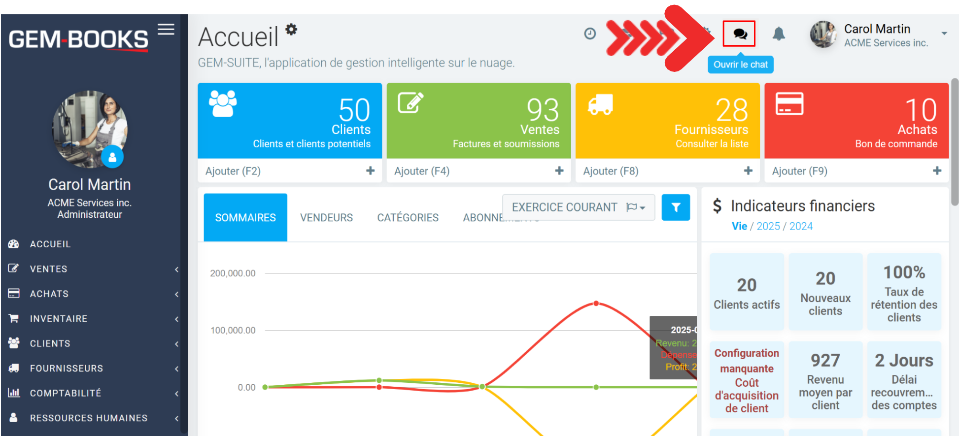 Pour consulter vos messages, cliquez sur la puce en haut à droite.
