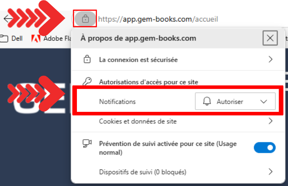 À côté de l'adresse du site web, cliquez sur le bouton avec le cadenas fermé.