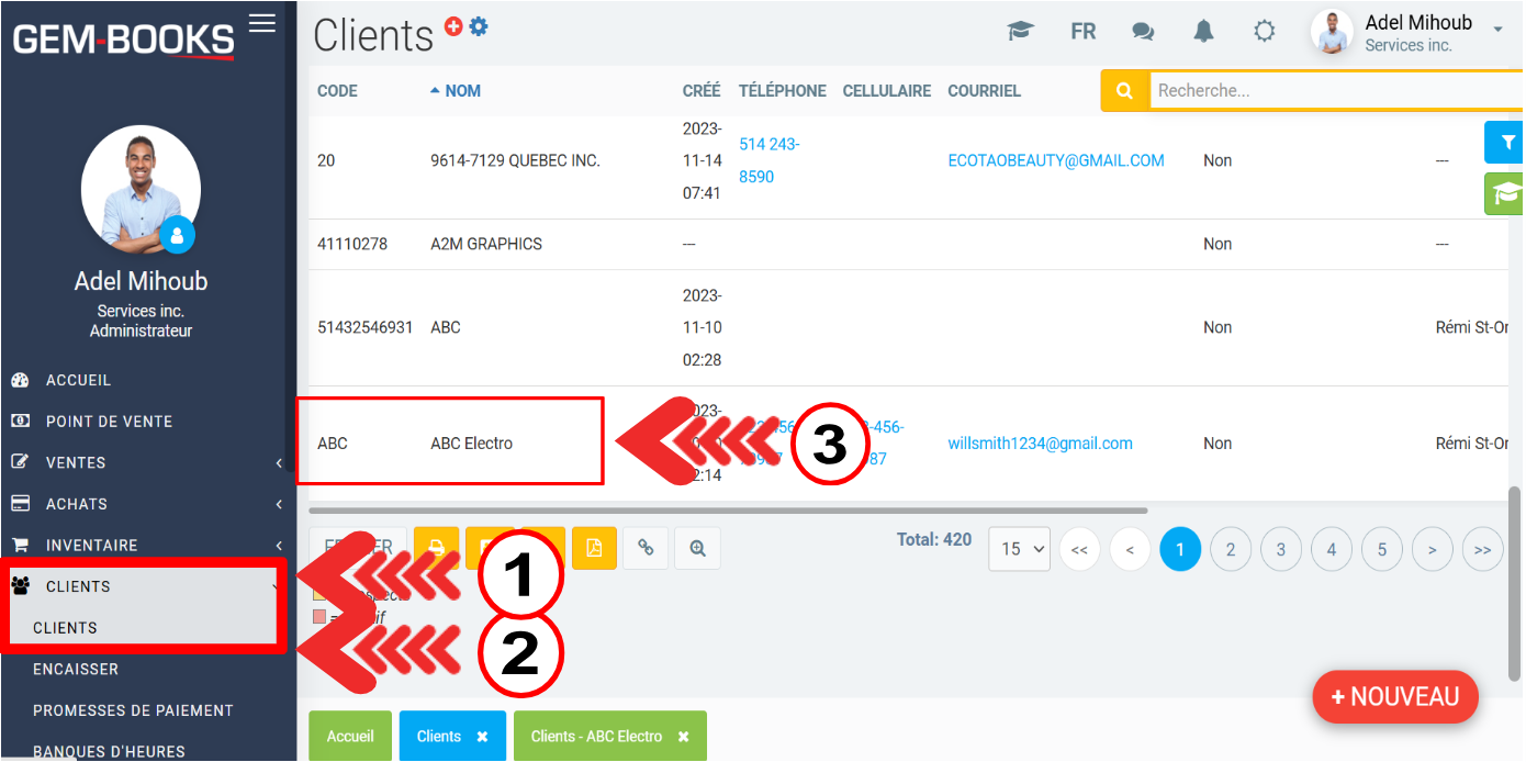Puis, dans la liste des clients, cliquez sur le client à qui vous désirez envoyer des factures.