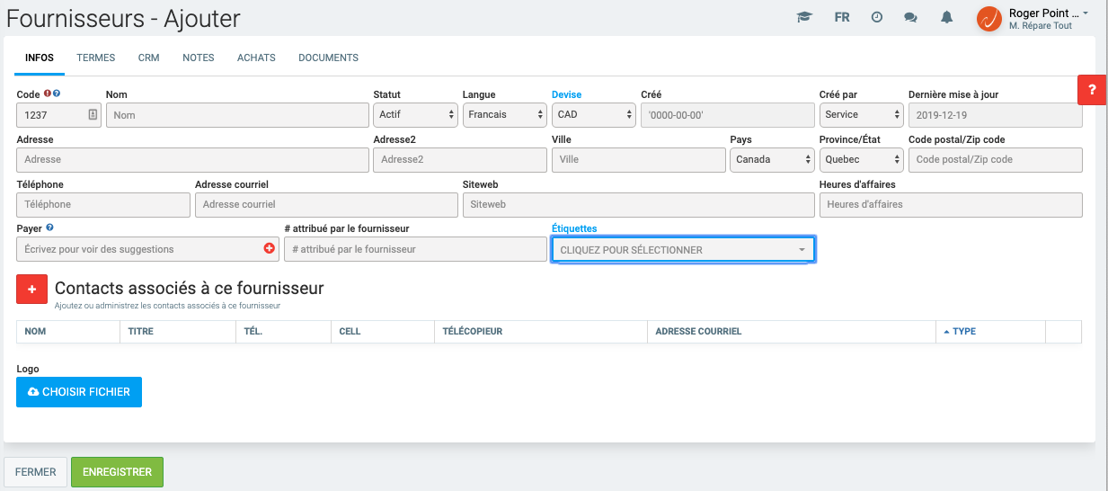 Les étiquettes créées ici seront applicables dans la fiche Fournisseurs, sous l'onglet INFOS.