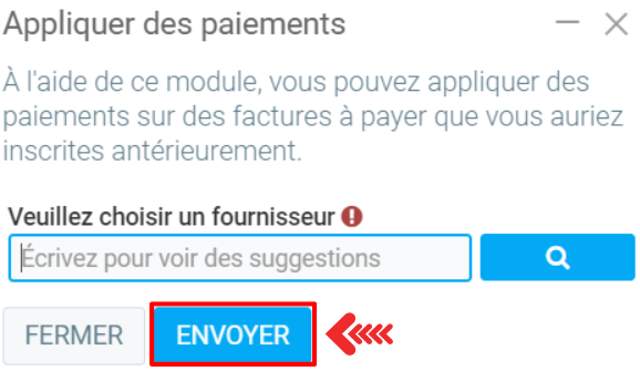 Cliquez ensuite sur le menu de gauche Fournisseur > Appliquer les paiements.