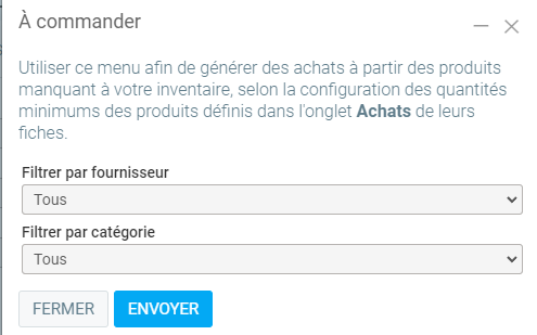 . Cela va donc créer des achats pour les produits, selon les fournisseurs des produits. Pour la suite, je vous invite à consulter la FAQ suivante pour le fonctionnement des achats : Comment générer un bon de commande ?