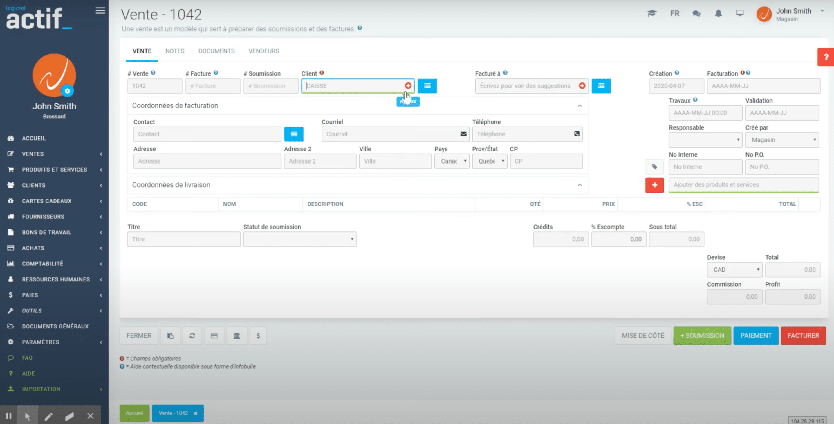 Cliquez dans le champ Client, commencez à taper le nom du client à qui vous voulez vendre la carte cadeau et choisissez son nom parmi les suggestions.