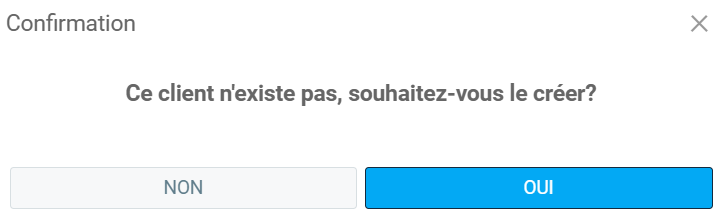 S'il n'existe pas, il vous sera proposé de créer un nouveau client.