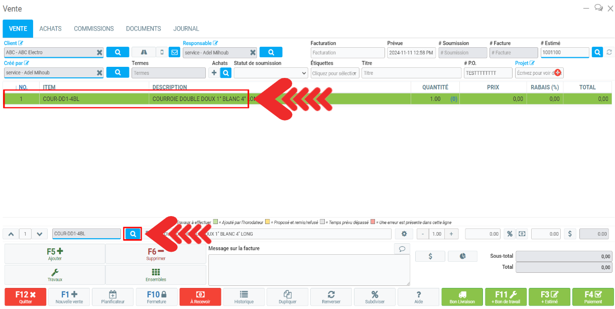 Pour modifier le prix d'un produit ou service dans l'inventaire à partir du Point de vente, commencez par ajouter le produit à la vente.