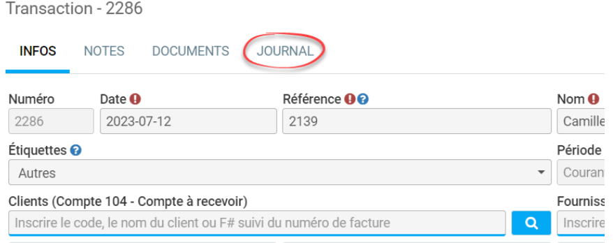 - Cliquez sur l’onglet “Journal”.