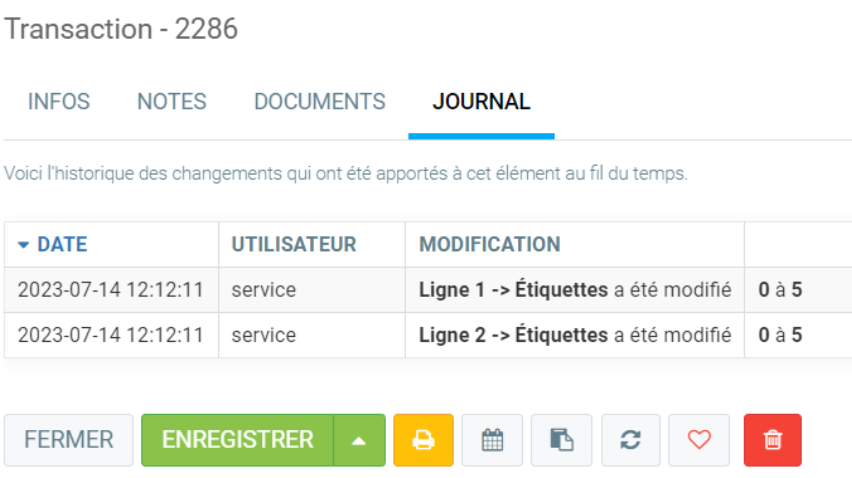 Journal des modifications des transactions