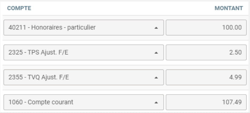 Configurer un compte avec prélèvement partiel des taxes (ex.: un compte de dépenses)
